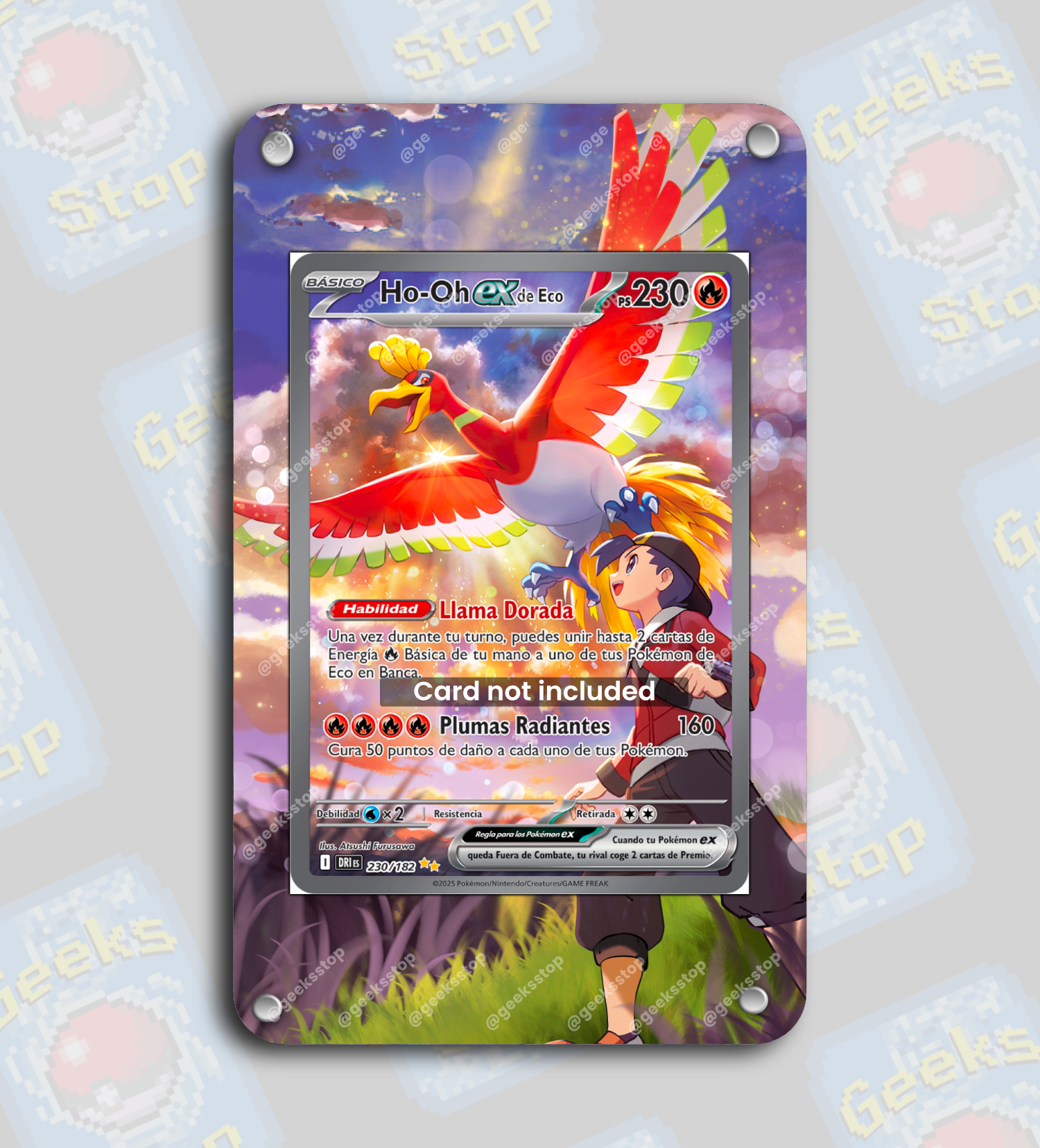 Display and protect your Ethan’s Ho-Oh ex SAR Art Rare Card from Heat Wave Arena and Destined Rivals Pokémon TCG set with this custom extended art display case.