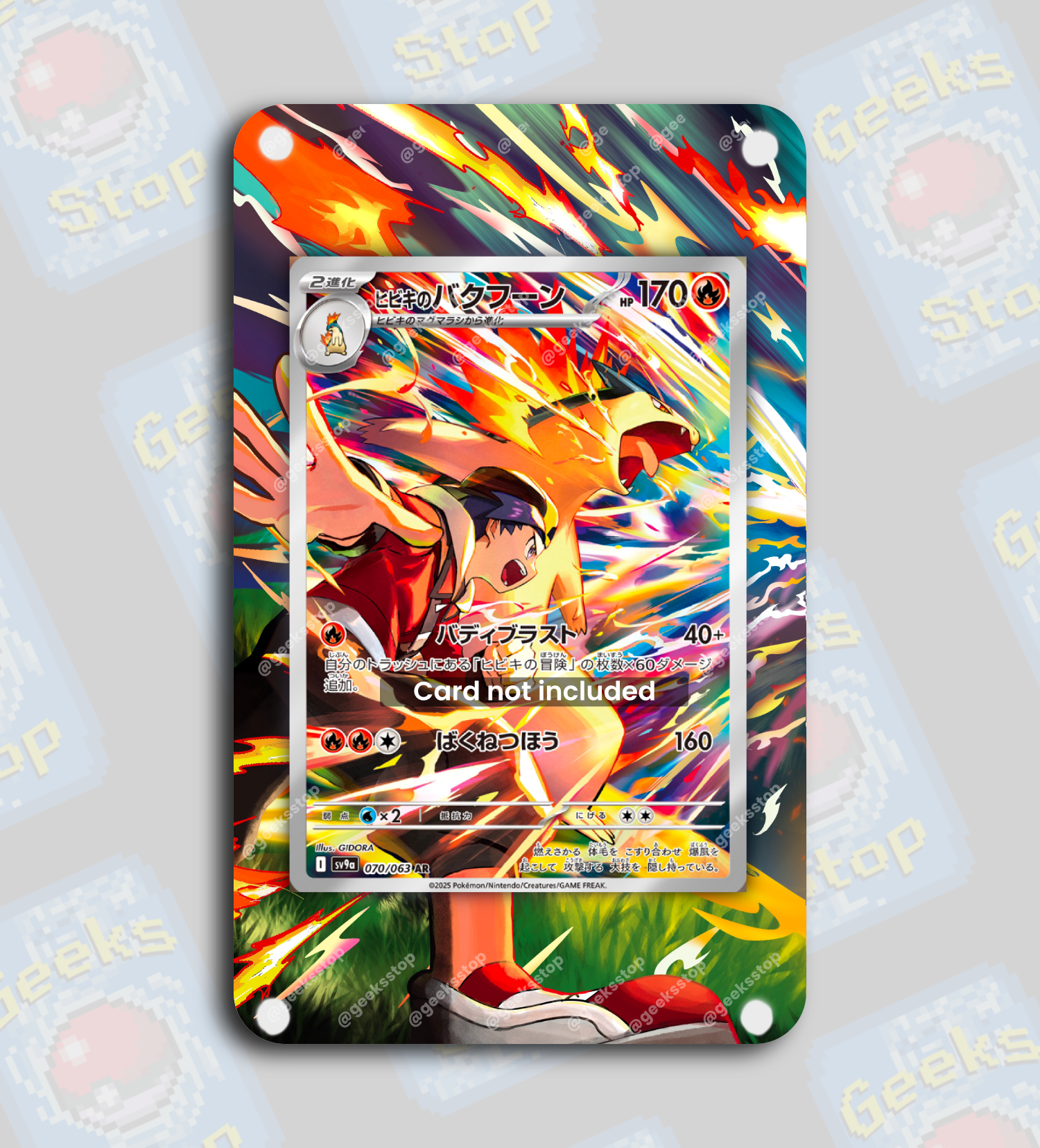 Display and protect your Ethan’s Typhlosion Art Rare Card from Heat Wave Arena and Destined Rivals Pokémon TCG set with this custom extended art display case.